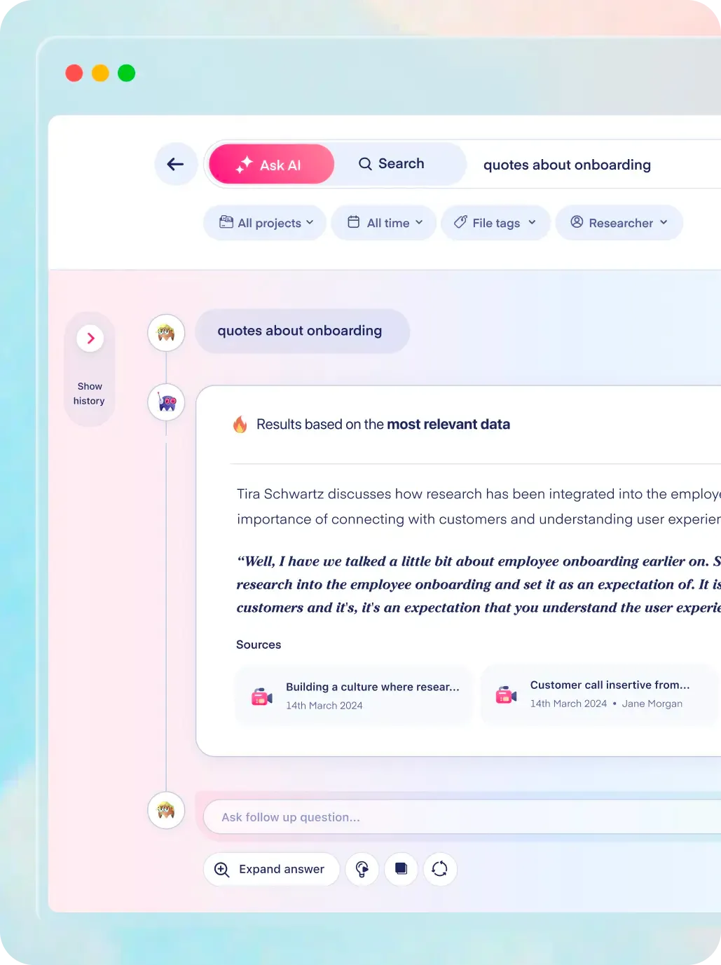 Accelerate research lifecycles, share findings across the teams, and build institutional customer knowledge.