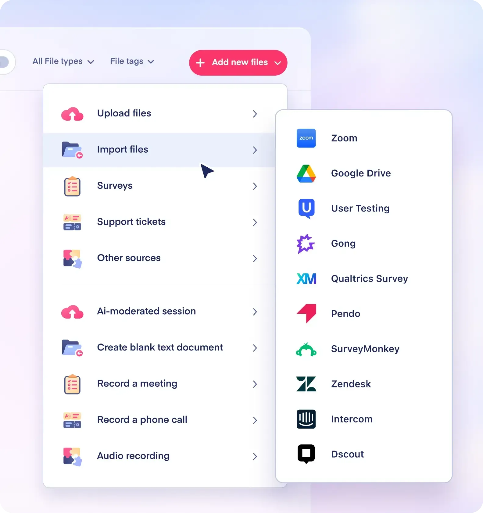 Deep Research works directly with your raw transcripts, surveys, and files, saving you hundreds of hours with tag-free, automated insights.