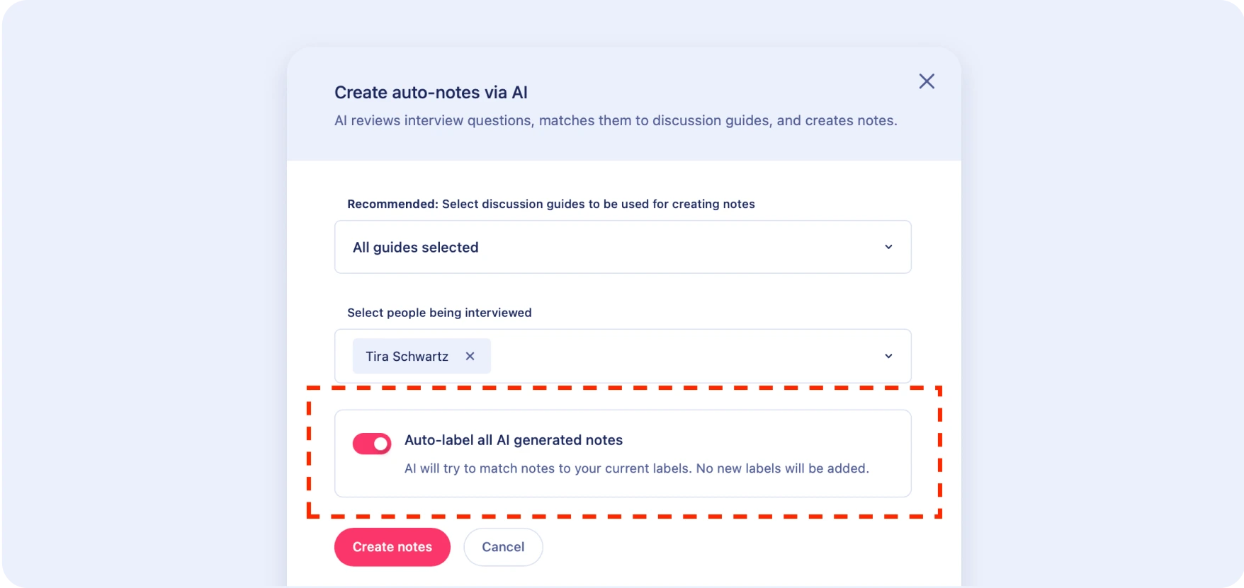 Reduce manual effort with our new Auto-Labeling feature. Marvin can now apply your existing project labels to auto-notes, ensuring consistency and reclaiming valuable time. Auto-Labeling shoulders hours of manual tagging, catapulting you straight to the strategic analysis phase much sooner. (Currently available for auto-notes)