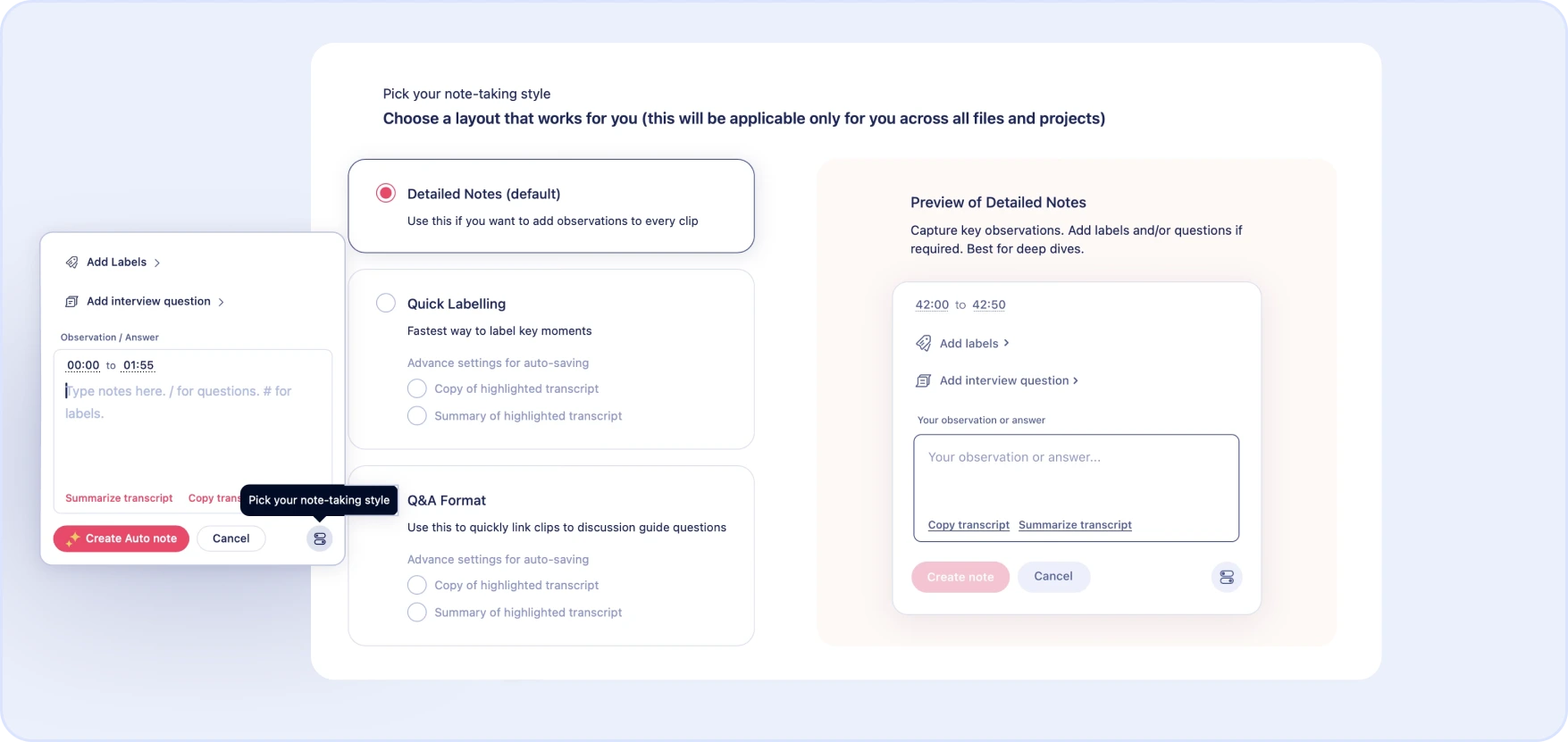Everyone has a preferred note-taking style. Marvin now lets you customize your note view, allowing you to choose between three formats to prioritize observations, labels, or questions. This helps individuals work more efficiently, speeding up the annotation process for the whole team.
