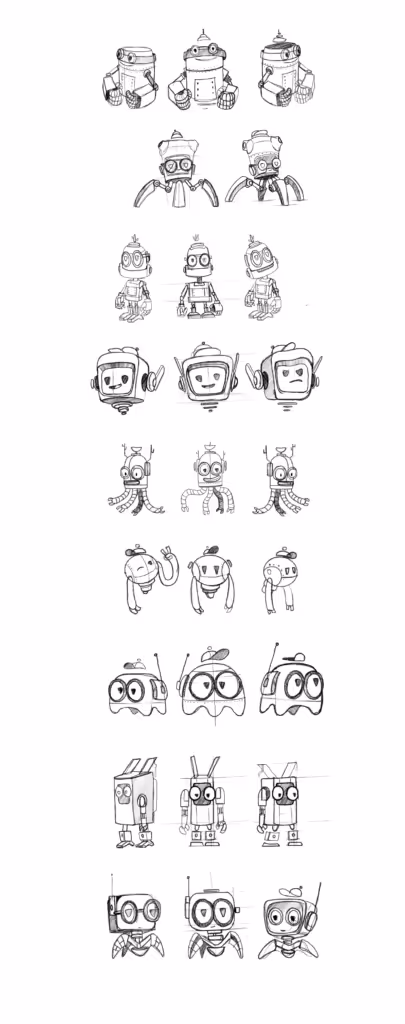We must have come up with a hundred characters. Below is just a sampling of the myriad little robots we came up with and almost adopted.Now that I think about it, maybe we did go too far.